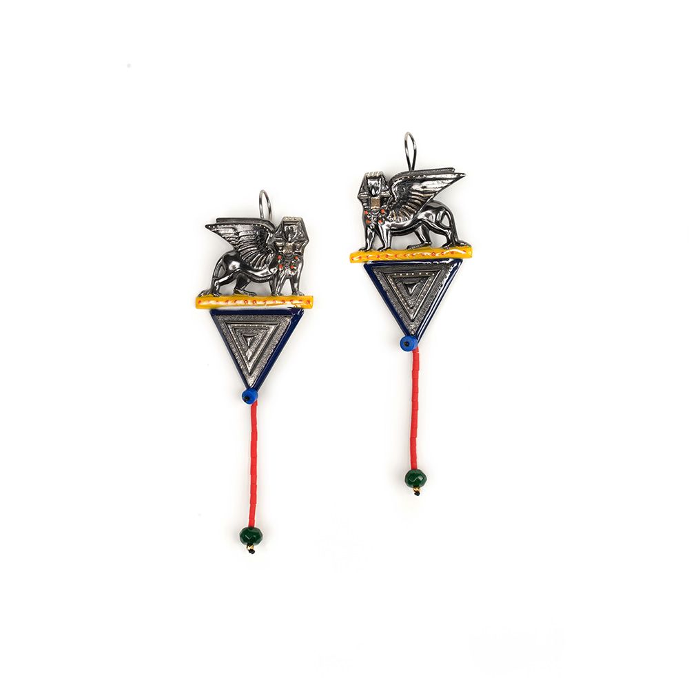 Black rhodium plated bronze earrings with enamel and semi precious elements