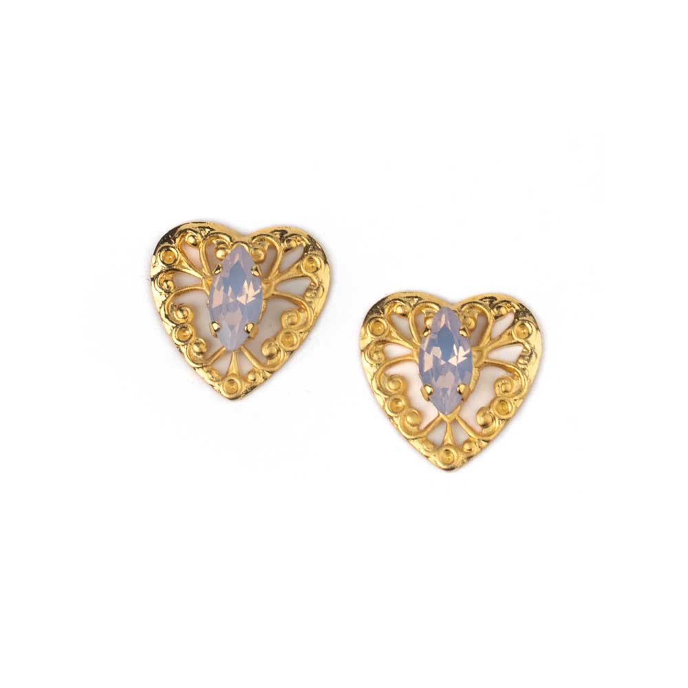 Gold Plated Brass Heart Earrings with Crystals