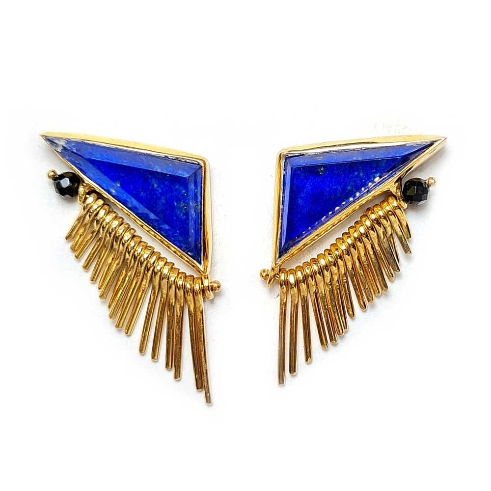 Home Jewelry Earings Silver collection Gold plated lapis lazuli quartz earrings