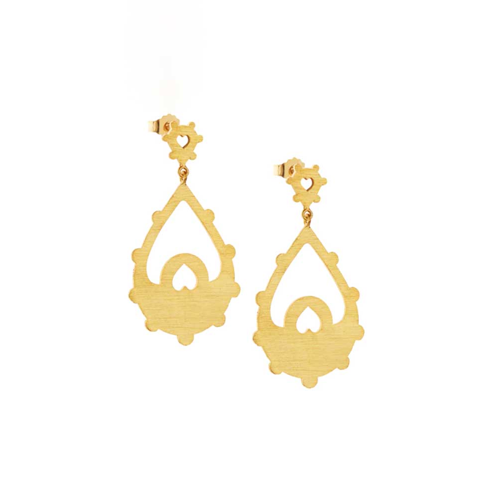 Gold plated silver long drop earrings with heart detail
