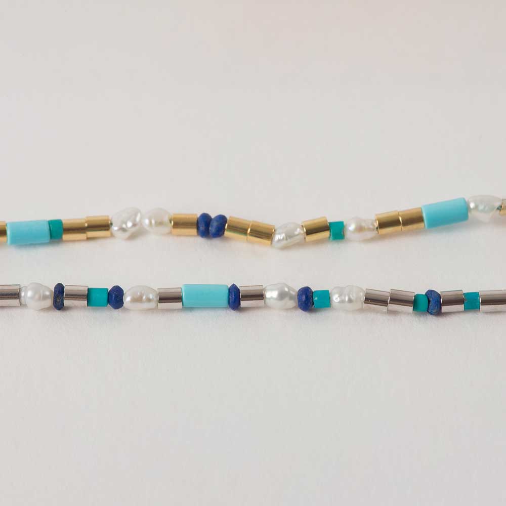 Its elements form an elastic thin wire that follows the movement of the neck and is easily combined with all your necklaces.