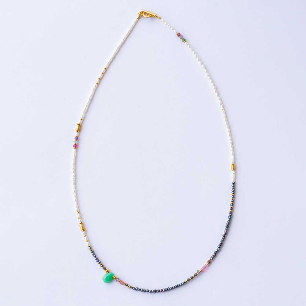 Necklace with white and black pearl