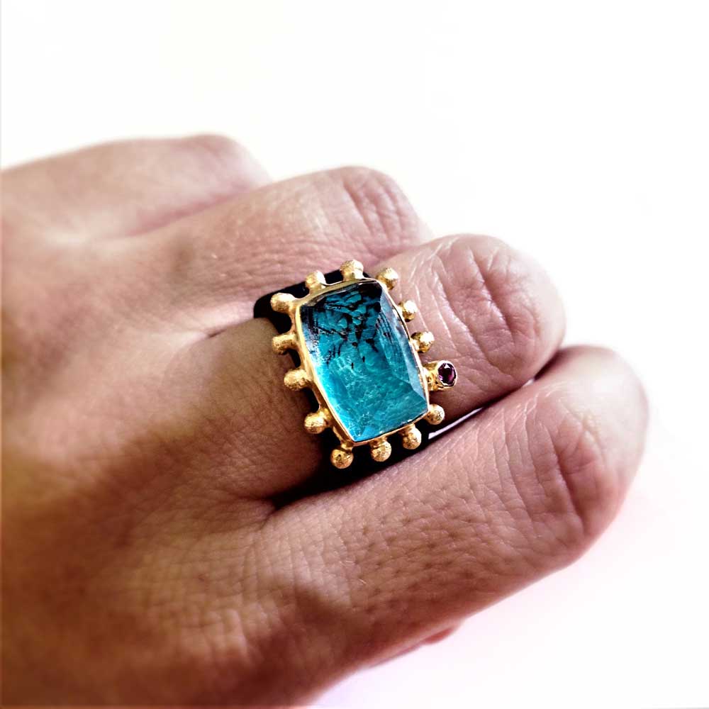 Be the first to review “Gold-plated ring with chrysocolla quartz and ruby” Cancel reply