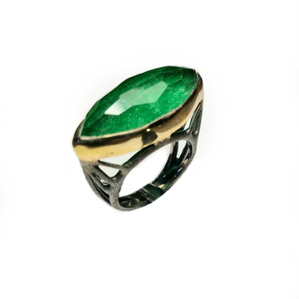 Αρχική σελίδα Κοσμήματα Δαχτυλίδια Fashion δαχτυλίδια Επιχρυσωμένο δαχτυλίδι με πράσινο jade χαλαζία