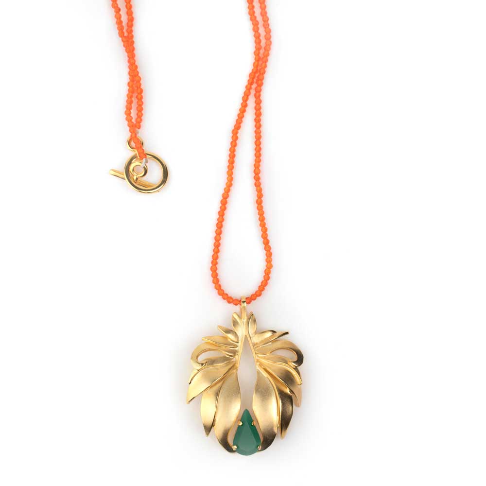 Κολιέ με κοράλι και επιχρυσωμένη αλυσίδα