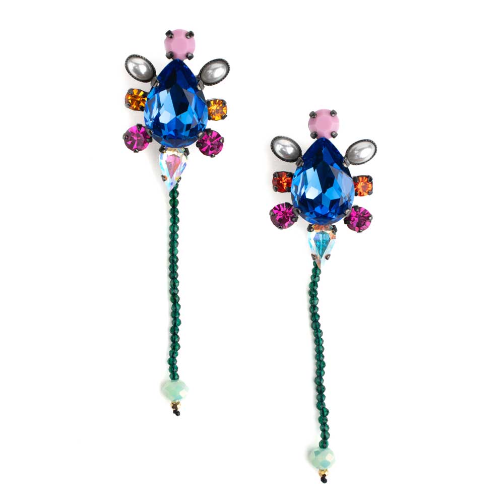 Σκουλαρίκια από ορείχαλκο με μαύρη επιμετάλλωση, μαργαριτάρια και κρύσταλλα